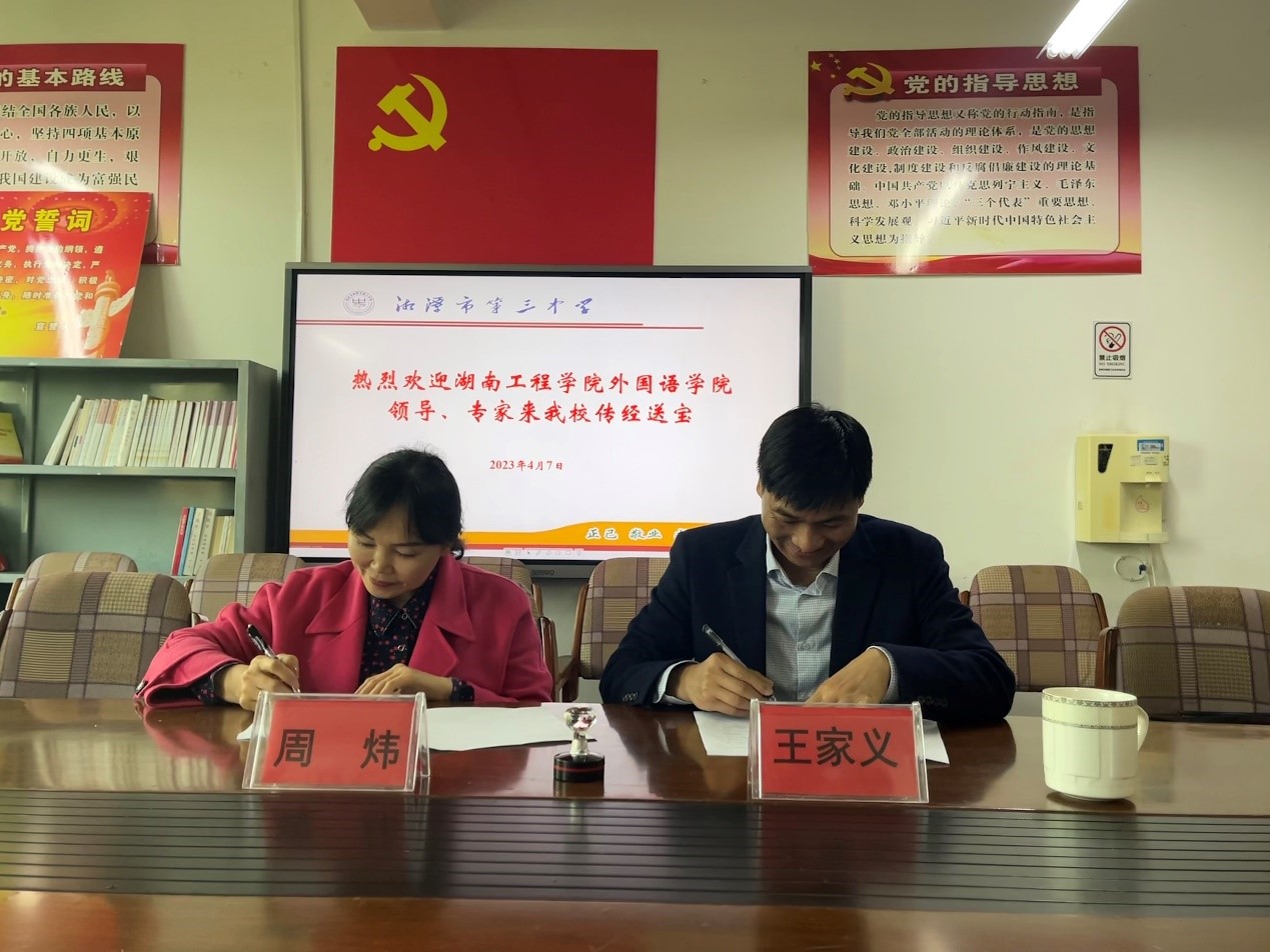 为英语专业教学方向学子开拓新的优质教学实习基地,4月7日,工训中心书记肖江淑陪同cctv13直播间在线观看院长王家义、英语系苏静、刘欣一行来到湘潭市第三中学就两校建立英语教学实习基地事宜进行交流洽谈。湘潭市第三中学校长周炜、副校长陈自力等教师代表出席了交流会。