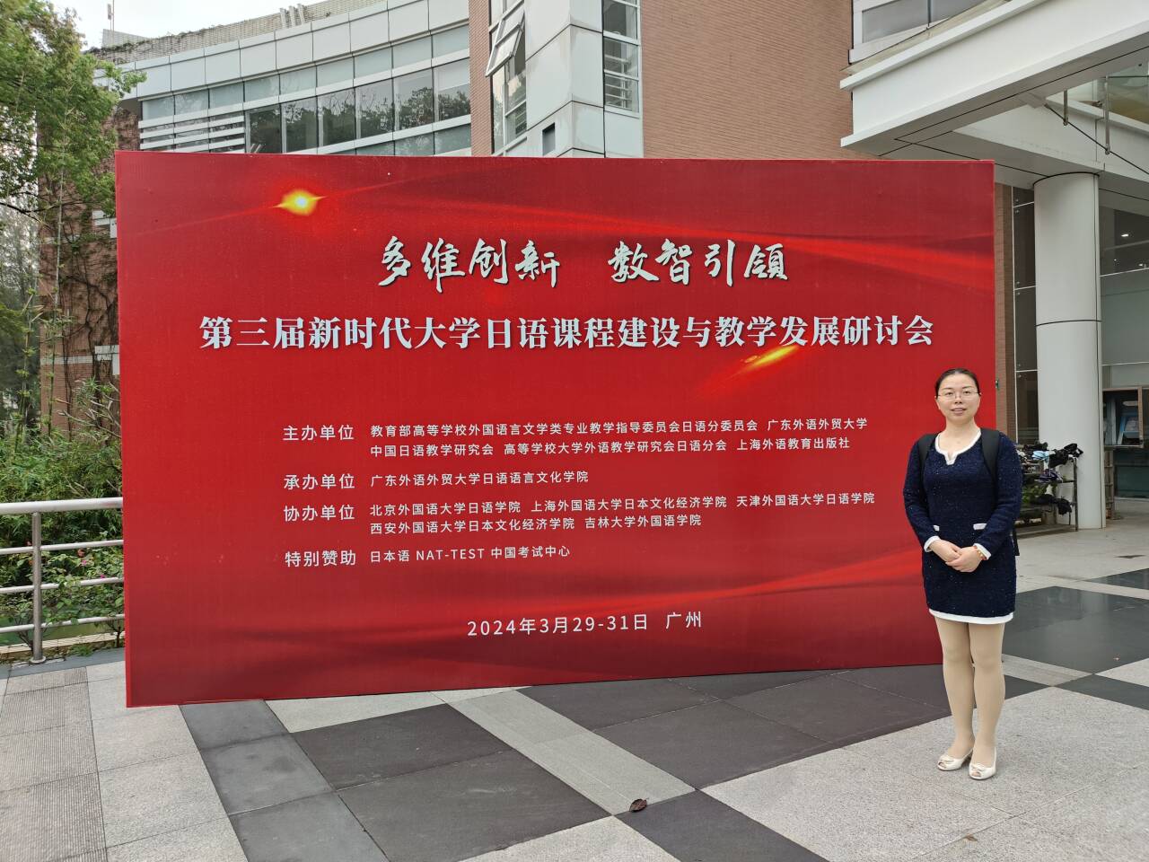 2024年3月29-31日,“第三届新时代大学日语课程建设与教学发展研讨会”在广东外语外贸大学召开。我院日语教师陈红参加了本次研讨会。