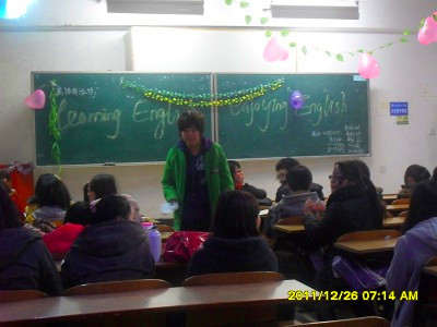 在悠扬的歌声中,此次英语角活动拉开了帷幕。随后,伴随着英文歌、华尔兹、笑话等精彩节目,使同学们在轻松的环境下享受着学习英语的快乐。在这些节目中,英文版的小品《灰姑娘》,节目新颖,风格轻松诙谐,赢得了同学们的阵阵掌声,将活动的气氛推向高潮。