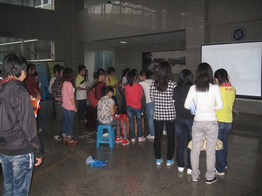 为了扩大此次活动的影响力,cctv13直播间在线观看于6月4日下午在主校区教学楼进行了展播。