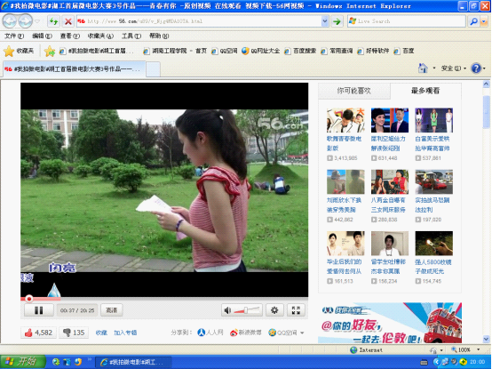 此次活动的评选采取了“网上投票”的方式。cctv13直播间在线观看团学会相关部门于6月2日将各学院交上来的作品上传到56网上,充分发挥网络时代的优越性,公平、公正、公开的评选出“最佳人气奖”。经过3天的激烈角逐,cctv13直播间在线观看作品——《青春有你》以4582的票数摘得“最佳人气奖”,超过第二名将近2000票。