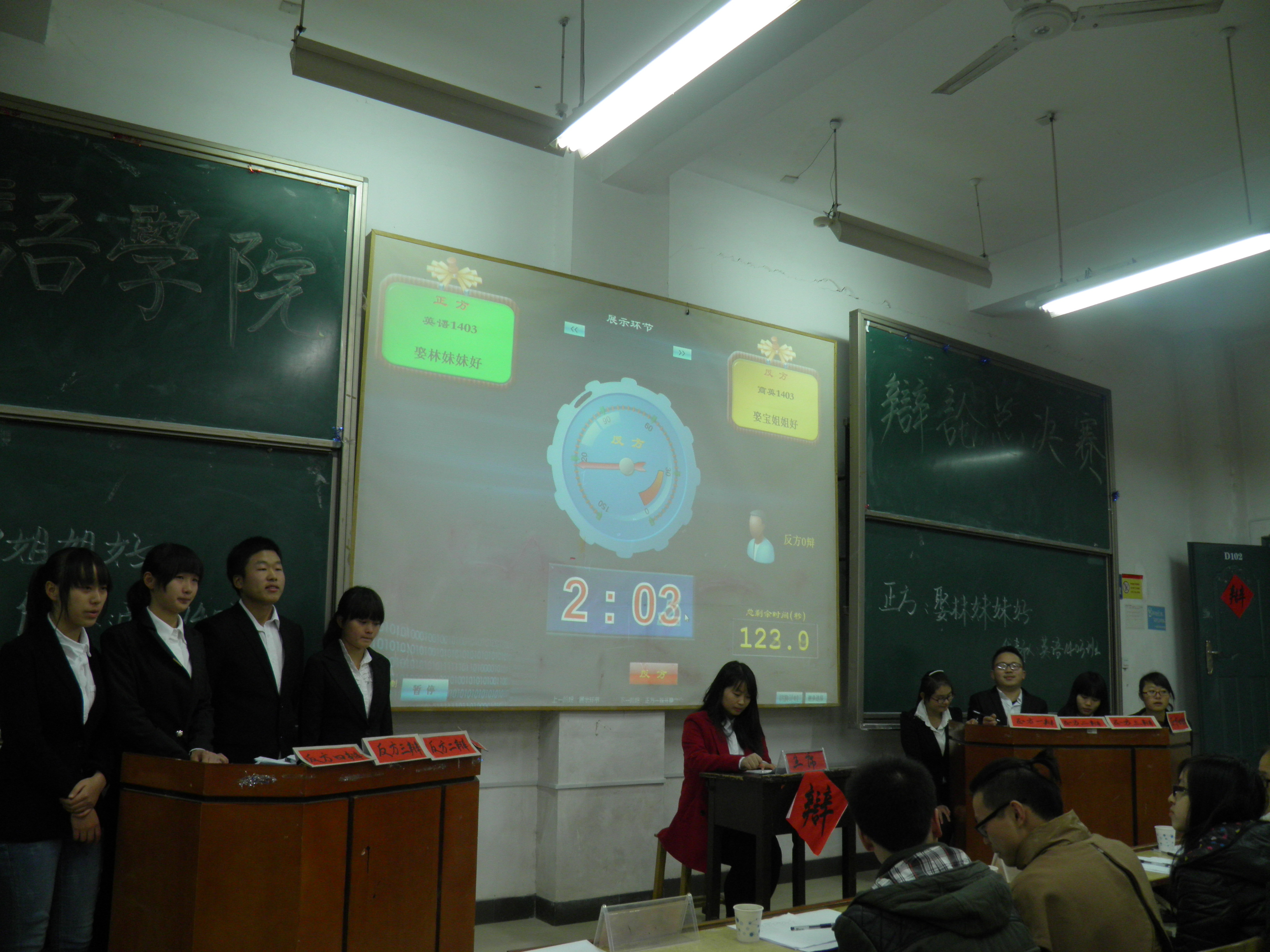 2014年12月14日晚7点,cctv13直播间在线观看班级辩论赛决赛于主教学楼D102拉开帷幕。cctv13直播间在线观看学生会主席吕方琪、团副高梦蝶及化工学院优秀辨手胡臻明应邀出席。