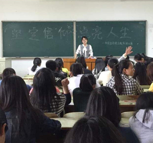 比赛过程中,12位选手怀着满腔热情阐述着什么是信仰的力量,畅谈了他们对于信仰的看法。选手们演讲的风格多样,有的慷慨激昂,有的娓娓道来,有的幽默风趣,每个人都通过这次比赛展现了自己的语言表达能力和人格魅力,台下的观众都聚精会神的聆听着,深深地陶醉在其中。一段段文辞优美的叙述,无不引起观众的强烈共鸣,精彩之处动情之处更是掌声、喝彩声不断,为比赛增添了激情,现场气氛热闹非凡。演讲比赛不仅展现了她们深厚的文字功底和流畅的表达能力,同时也彰显了我院大学生们积极向上的精神风貌。比赛最后,通过公平公正的投票,由英语1501班李晓芳同学获得此次演讲比赛的第一名。