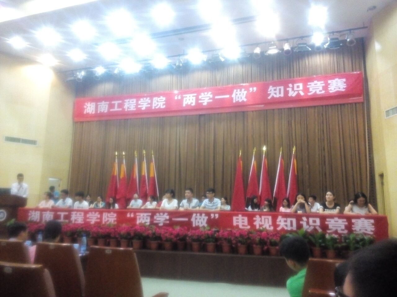 为了贯彻落实关于中央“两学一做”学习教育部署,进一步推动学习教育深入开展, 2016年6月8日晚,由湖南工程学院党委组织部、共青团湖南工程学院委员会、湖南工程学生联合会联合主办的“两学一做”知识竞答赛在图书馆一报告厅举办,学校相关领导出席并担任评委,所有党员及预备党员到场学习观看比赛。