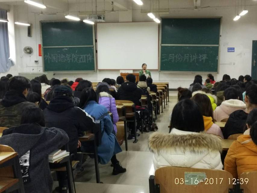 为提高同学们的自我防范意识、减少上当受骗情况、打造文明寝室,3月16日中午12:30分,cctv13直播间在线观看分别在教学楼D401、D101、D102举办了此次月讲评活动。本次讲坪各年级分别由张琼燕老师、张婷老师、连泰老师和黄琴老师主持,cctv13直播间在线观看全体同学参与了此次讲评。