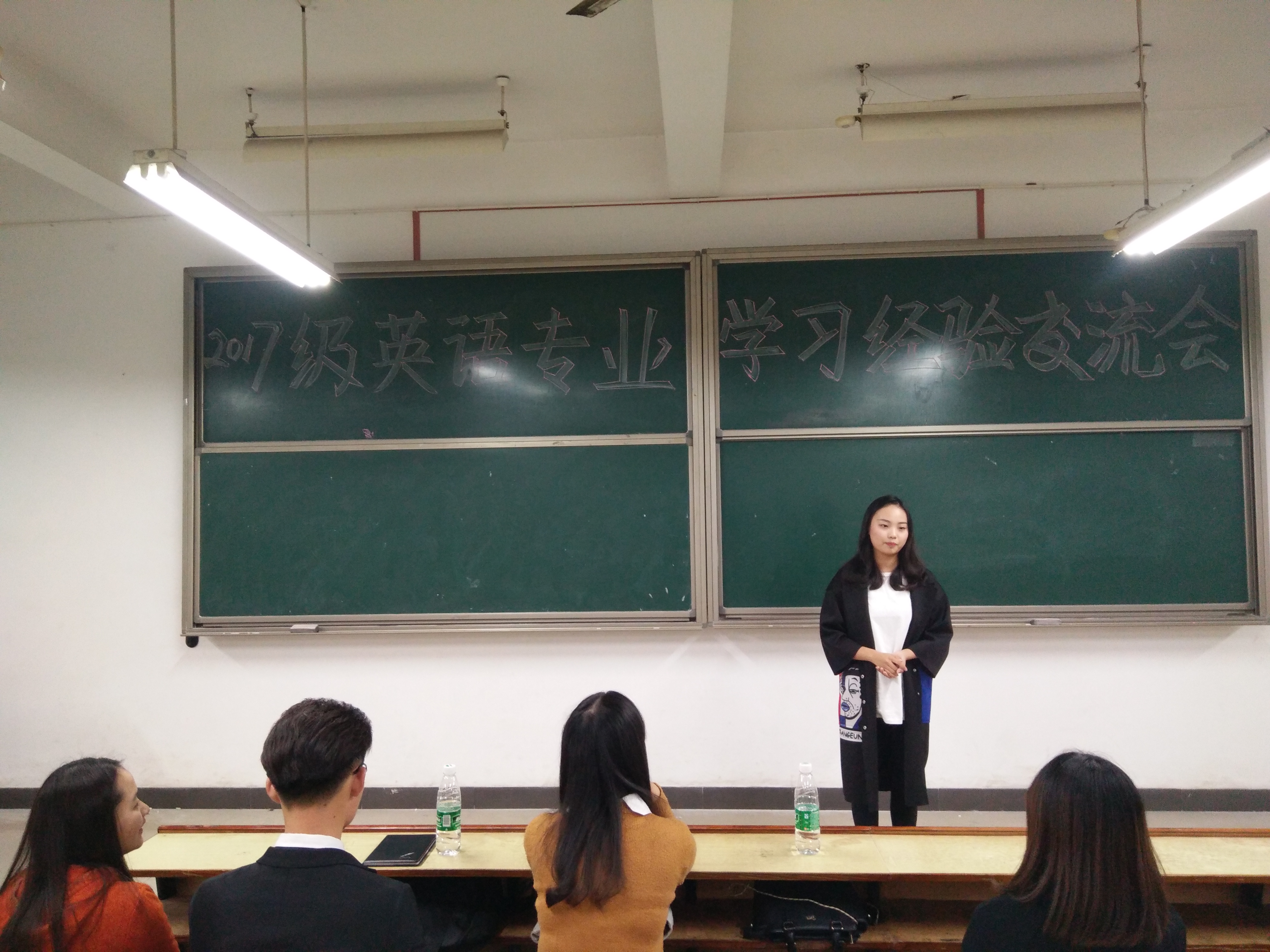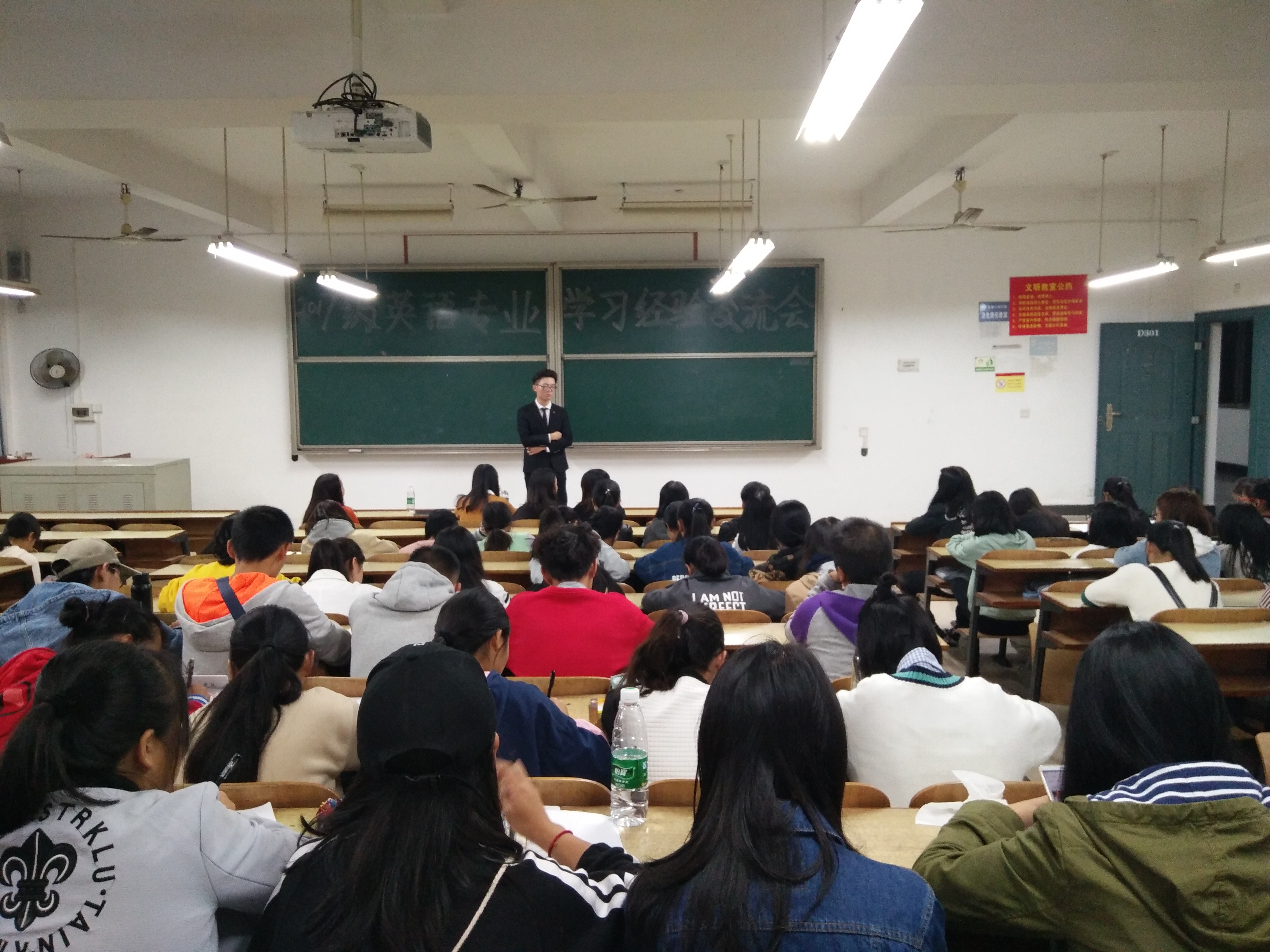 为了使英语专业新生更快、更好的完成由高中生到大学生角色的转变,迅速的融入到大学生活中,cctv13直播间在线观看于10月23日晚7::00在教学楼D301举行了2017年度英语专业学习经验交流会。本次学习经验交流会由cctv13直播间在线观看团学会干部刘恬文、何李佳主持,cctv13直播间在线观看2017级全体英语专业学生到场聆听。湖南工程学院2017-2018届校团委秘书长徐佳琦、cctv13直播间在线观看英语专业优秀学生代表李明丽、cctv13直播间在线观看2016-2017届团学会主席叶金菊作为特邀嘉宾参加了本次学习经验交流会。