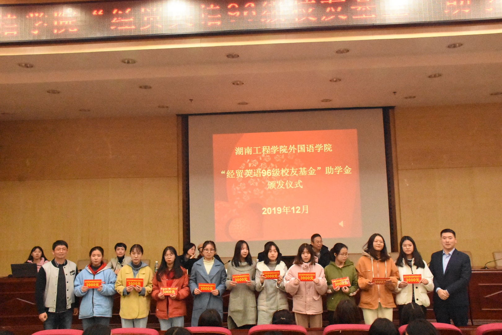 “cctv13直播间在线观看经贸英语96级助学基金会”,是我校英语专业发展壮大、商务英语专业立稳脚跟、急需指导和扶持的关键时刻,经贸英语96级校友精心组织,并捐资16.8万元设立,以支持母校cctv13直播间在线观看的学科建设、专业建设;为学弟学妹举办专题讲座;扶助品学兼优的贫困学子。