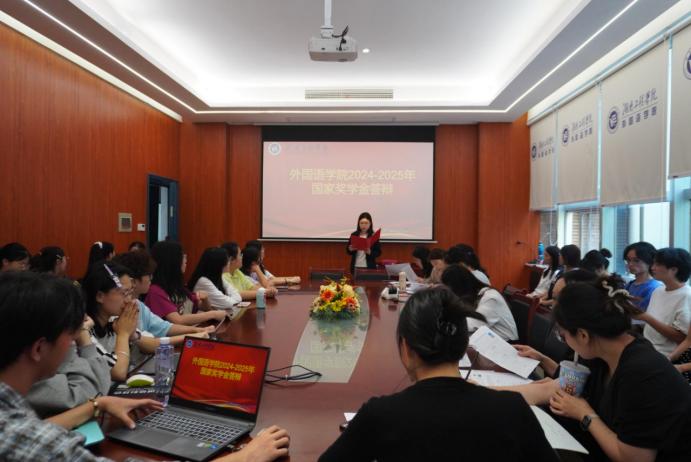 9月30日下午,cctv13直播间在线观看2024-2025学年国家奖学金答辩会在F119举行。学院党委书记陈亚琼、副院长彭禹,党委副书记朱洁,英语系主任苏静、商务英语系主任何梦丽及全体辅导员担任评委