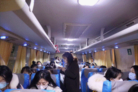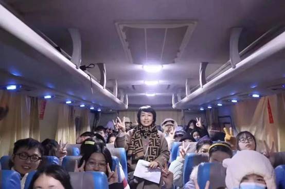 在大巴上,老师们仔细清点人数,一遍遍确认学生是否都已到齐.同时还提醒同学们注意所在考场和所乘车辆,避免因坐错接送车而耽误时间。同学们之间也相互鼓励,希望大家都可以勇攀人生又一高峰。车外寒风刺骨,车内暖意浓浓。26日清早片片飘扬的雪花,似乎也预示着来年的好兆头。瑞雪兆丰年,这将是丰“硕”的一年。