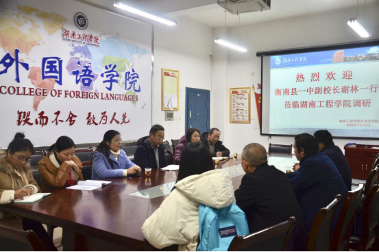 12月3日下午四点,衡南县一中副校长谢林一行莅临我校调研,院长杨永和、党总支书记肖江淑、副书记罗望阳以及国际教育学院副院长曹丽英等领导在cctv13直播间在线观看F119热情接待。