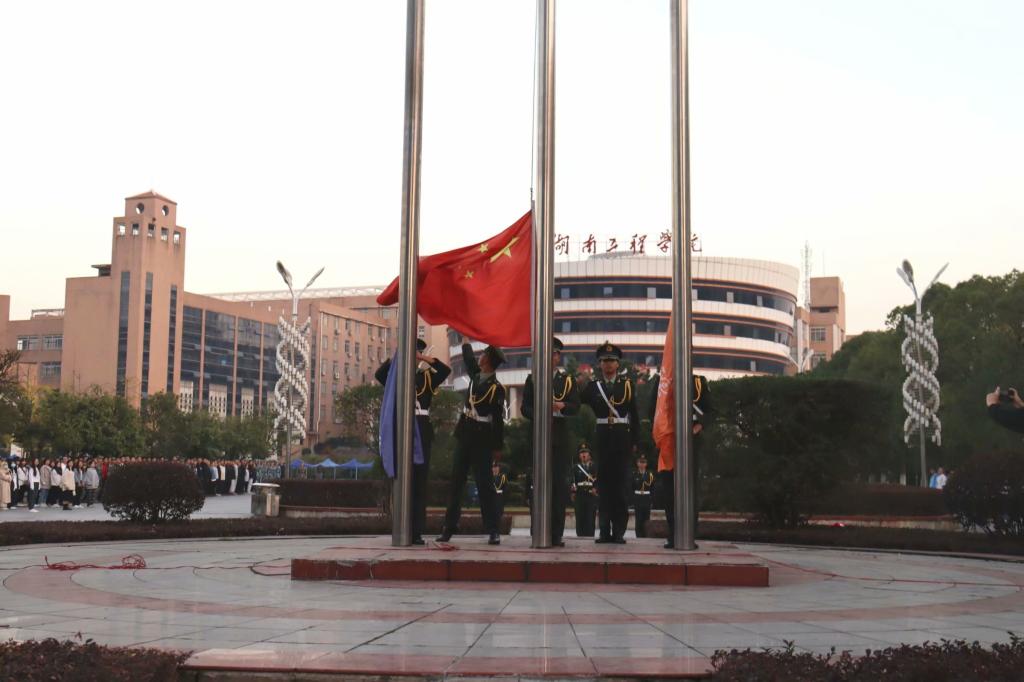 红日初升,晨光熹微。升旗手整齐划一的脚步声响彻知行广场,在令人热血沸腾的国歌声中,国旗缓缓上升,外院学子们肃立,行注目礼,奏唱国歌。