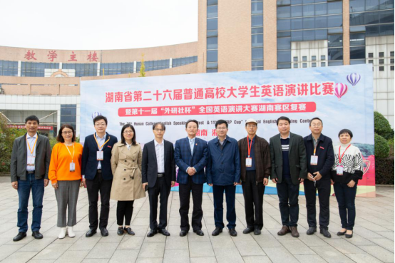 层林尽染,丹枫迎秋。10月31日、11月1日,湖南省第二十六届普通高校大学生英语演讲比赛暨第十一届“外研社杯”全国英语演讲大赛湖南赛区复赛在我校图书馆一、二报告厅隆重举行。湖南省教育厅高教处副处长周军、调研员张琳,湖南省高教学会大学外语专业委员会会长曾凡贵,湖南工程学院副校长李军林等领导、评委及嘉宾出席了开幕式。