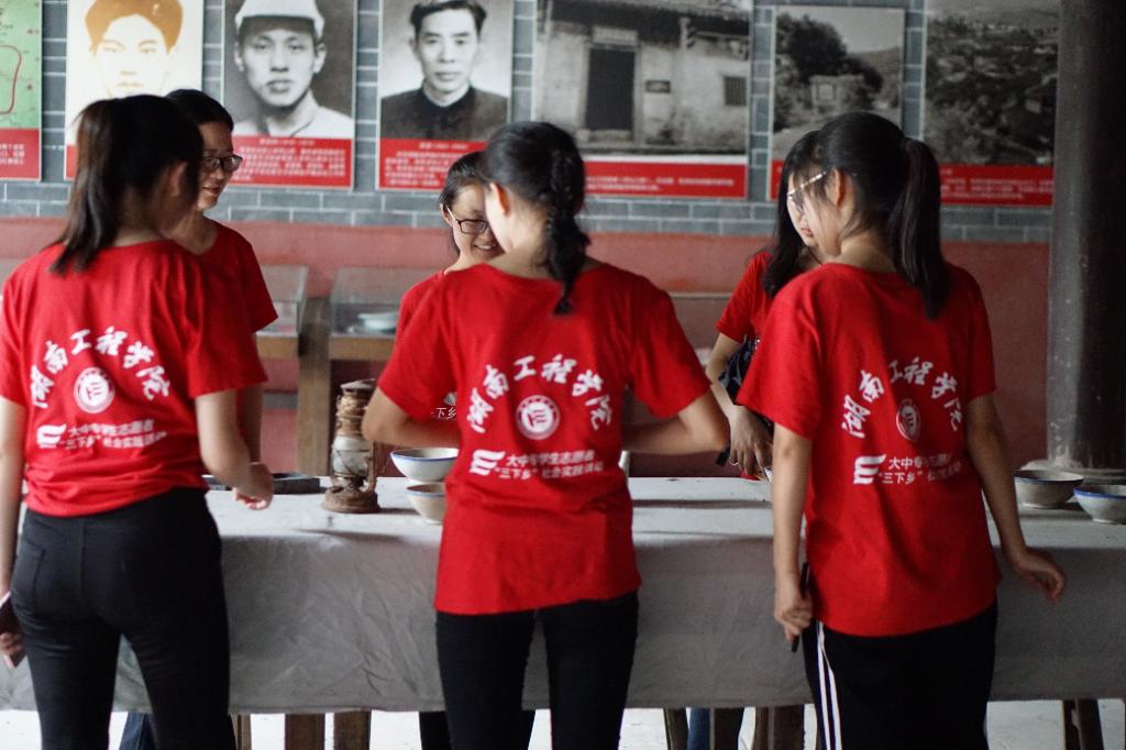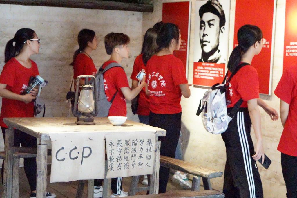 抵达水口镇后,实践团前往叶家祠参观学习。叶家祠是毛泽东主持第一次连队建党旧址。祠内保存着革命时期旧物与史料图片,而墙壁上不同时期的入党誓词深深的吸引着实践队成员。从最早期到抗日战争时期,再到解放战争时期、建国初期、党的十二大,入党誓词的变迁,深刻反映着时代的变化。团队成员结合各时期的历史对其进行了具体分析,并就当前党支部建设展开了激烈的讨论。随后,实践团队里面的党员们面对誓词进行了庄严宣誓,大家纷纷表示要做新时代青年大学生代表,以党员高标准严格要求自己。