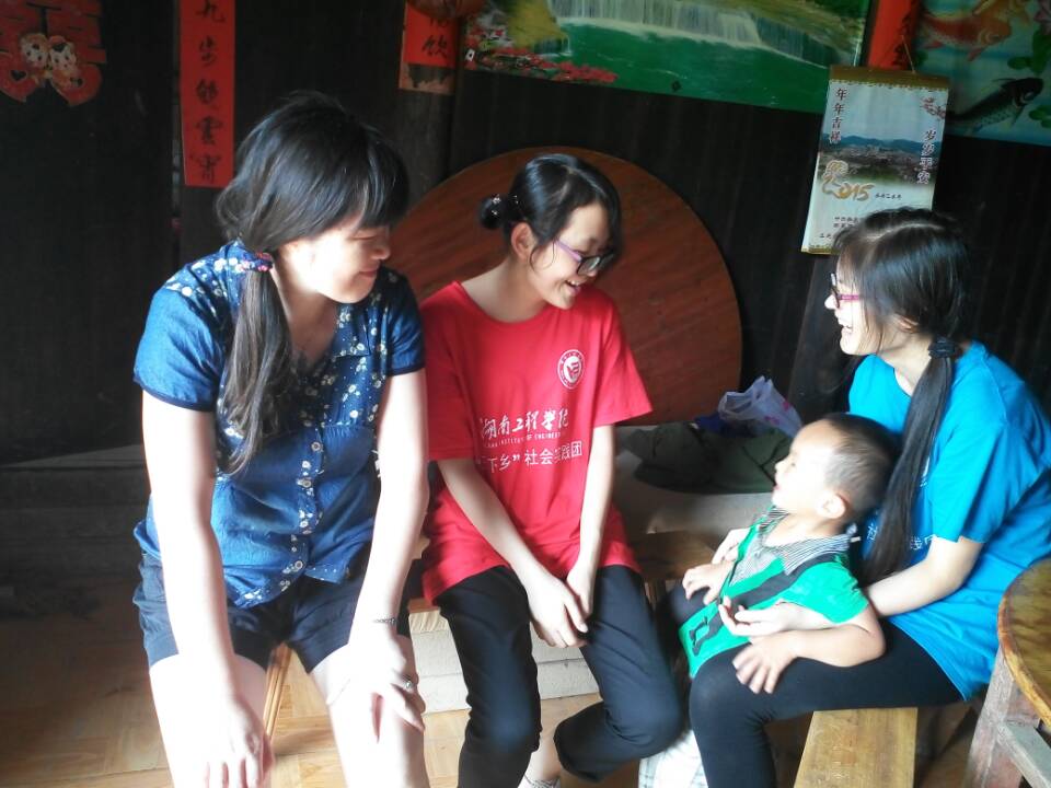 志愿者与村民家小孩玩耍