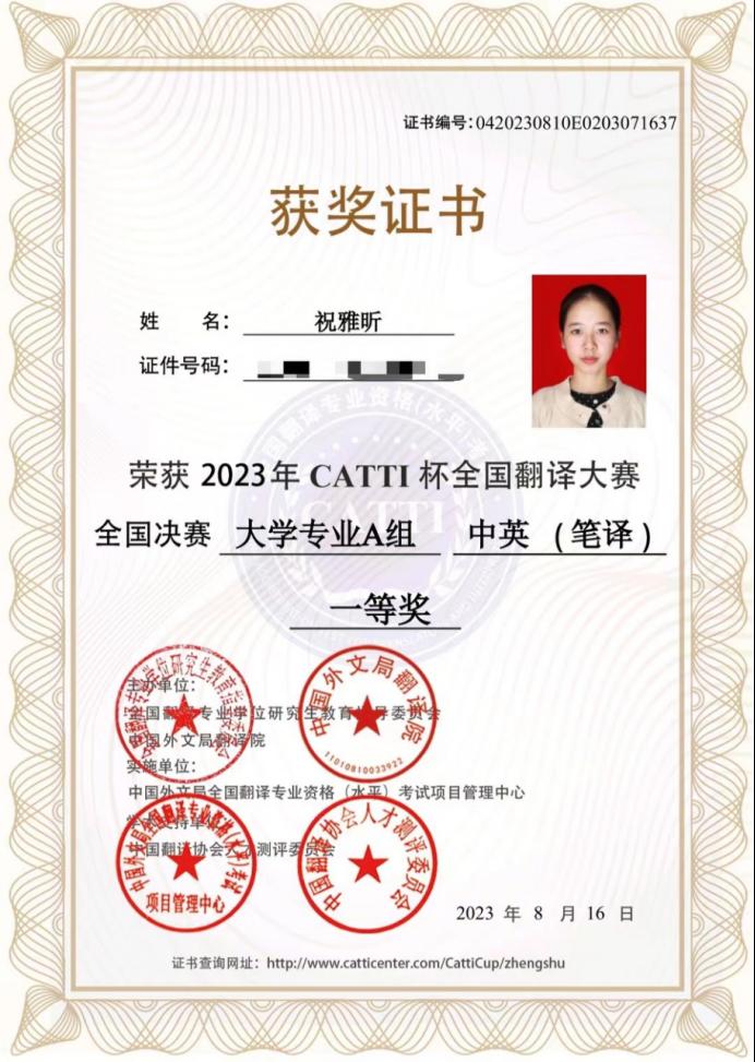 近日,2023年“CATTI”杯全国翻译大赛已顺利落幕,cctv13直播间在线观看英语专业祝雅昕同学喜获决赛一等奖,cctv13直播间在线观看获优秀组织奖。