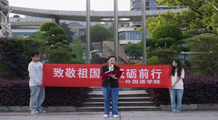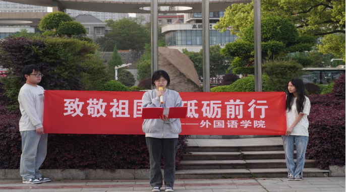 在冉冉升起的五星红旗下,学院党委副书记发表讲话,强调外语人肩负的双重使命:既要做中华文化的传承者,更要成为世界文明的桥梁搭建者。讲话提出三点期望:一是要以历史为镜,用外语讲好中国故事;二是要以语言为舟,培养全球视野与专业本领;三是要以青春为笔,在服务国家战略中实现人生价值。