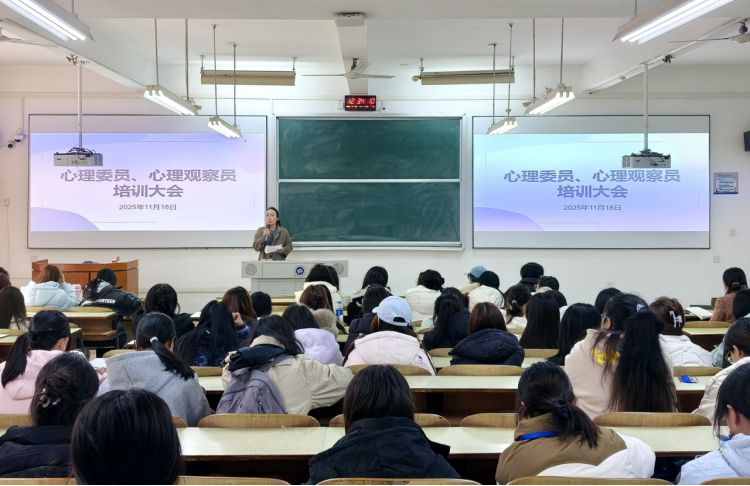 为强化心理委员、心理观察员的岗位履职能力和专业理论素养,提升其对校园心理问题的识别与干预能力,筑牢校园心理健康防护的前置防线。外国语院于11月18日开展了以“启心之航,聚力之桥”为主题的心理委员、心理观察员培训大会。本次培训由晏莉老师主讲,覆盖学院各班心理委员、心理观察员。