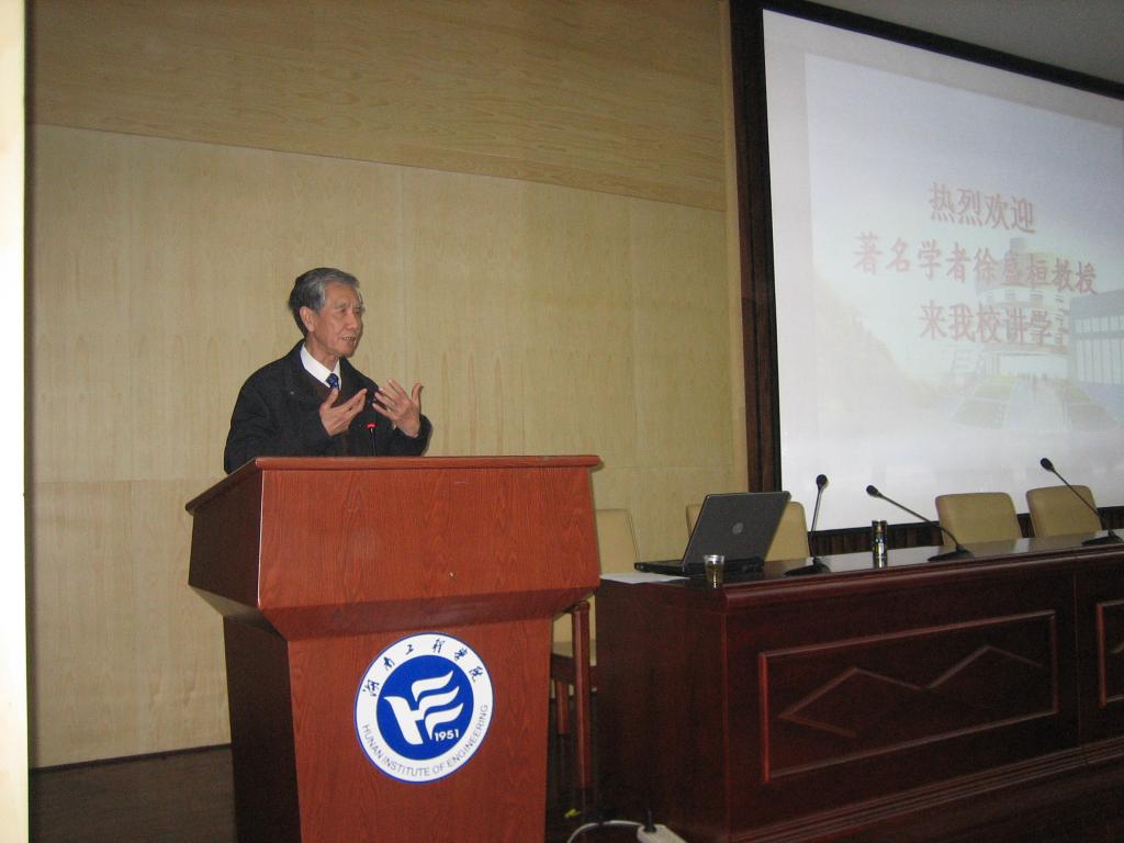2008年11月24日, 应湖南工程学院cctv13直播间在线观看之邀, 我国著名学者,语言学家徐盛桓教授来我校讲学。湖南工程学院二报告厅座无虚席,近300名师生聆听了徐教授的讲座。