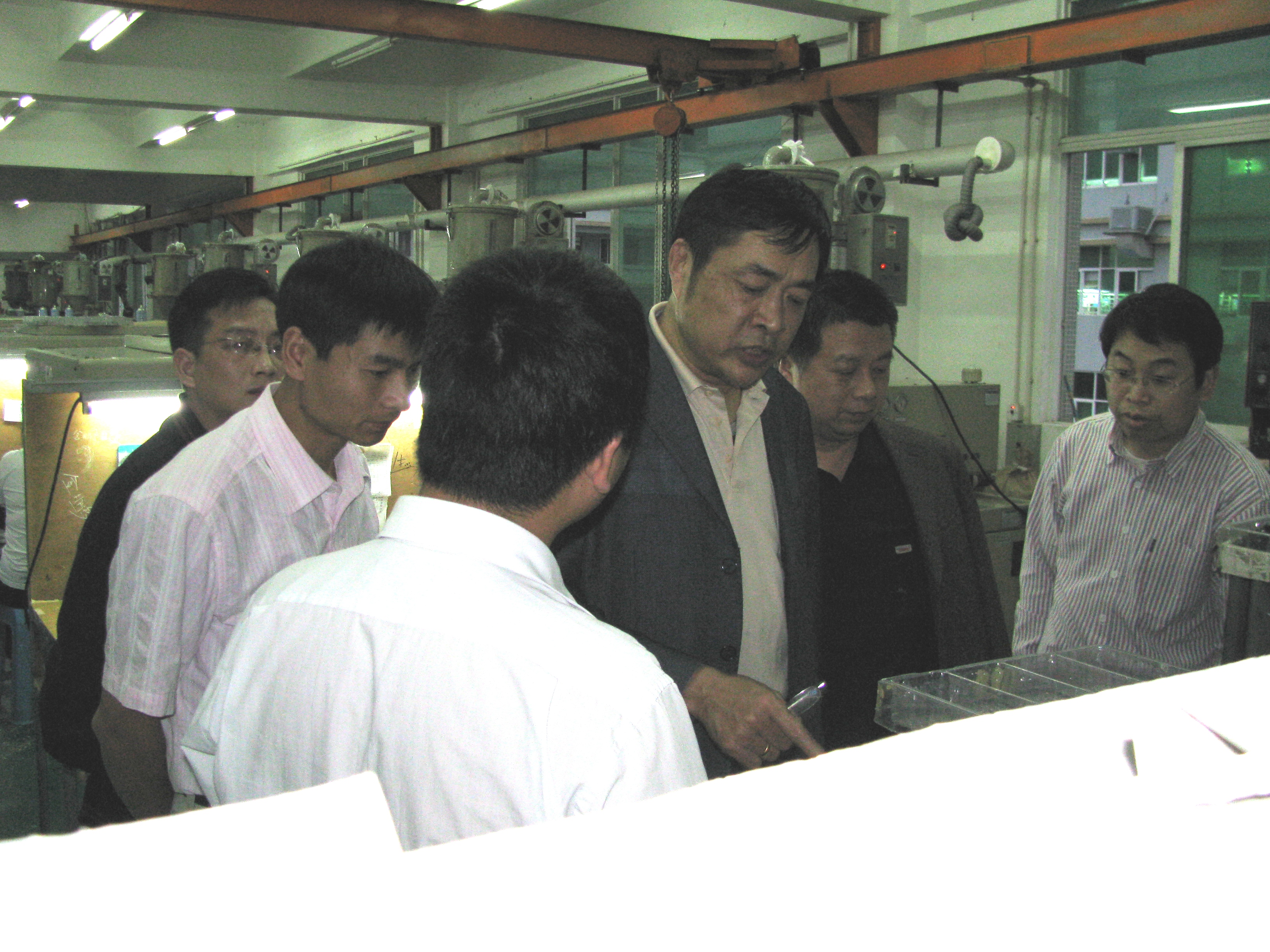 3月20日清晨,考察组一行6人就迎着满天晨曦,踏上了前往深圳的道路。经过漫长的旅途后,大家在下午四点来到了校友丘兵同学(我院99级经贸英语专业毕业生)与商界成功人士牛大金先生共同创办的民营企业——深圳市金鹏日盛塑胶模具有限公司。