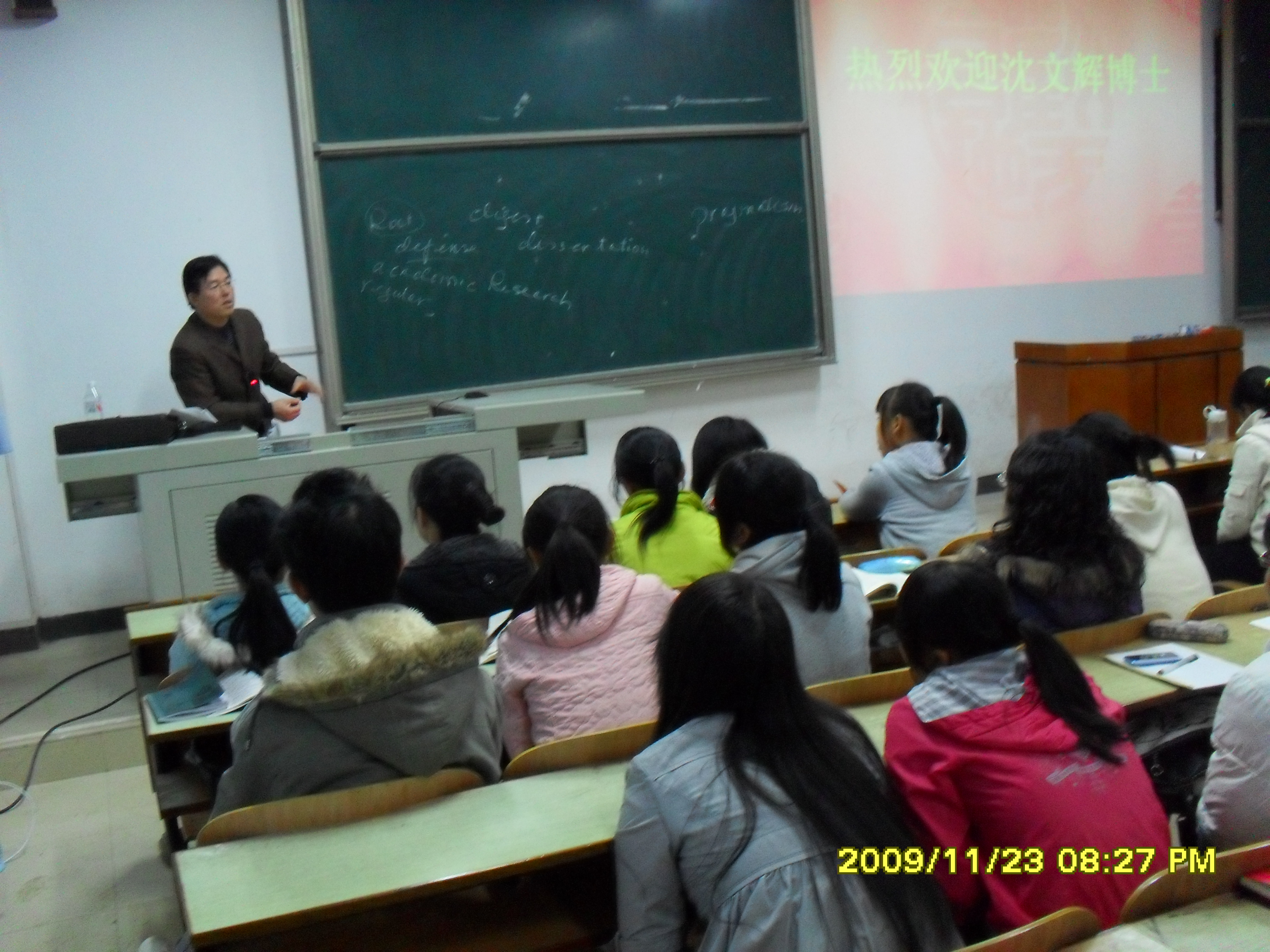 11月23日晚7:30,学识渊博、幽默风趣的沈文辉博士在教学楼D座101为cctv13直播间在线观看大一大二的学子们带来了一场精彩绝伦、意义非凡的关于“How to Study English”的学术讲座。