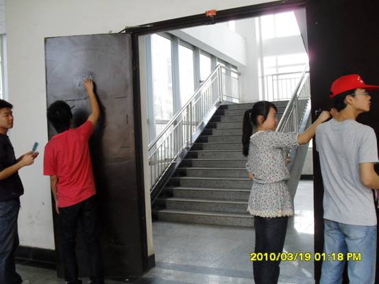 活动一开始,所有志愿者便被分成了几个小组,戴上小红帽,拿着小刀或抹布,分别清除教学楼黑板、墙壁和玻璃上的“牛皮癣”。每位同学都怀着满腔的热情,认真地与顽固的“牛皮癣”作战,经过一个小时的努力,教室、墙壁和玻璃终于恢复了干净的面孔,志愿者们也露出了心满意足的微笑。