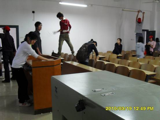 3月19日中午十二点半,cctv13直播间在线观看所有党员、预备党员以及团学会全体干部干事,携手理学院雷锋社开展了“学雷锋,清除教室牛皮癣”的志愿活动。本次活动旨在创建校园文明,传播雷锋精神。