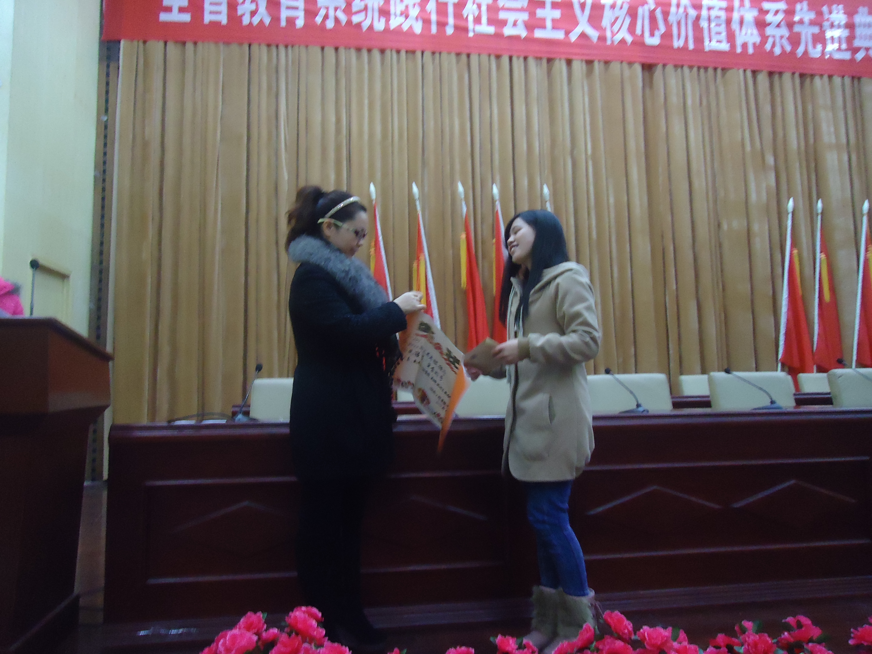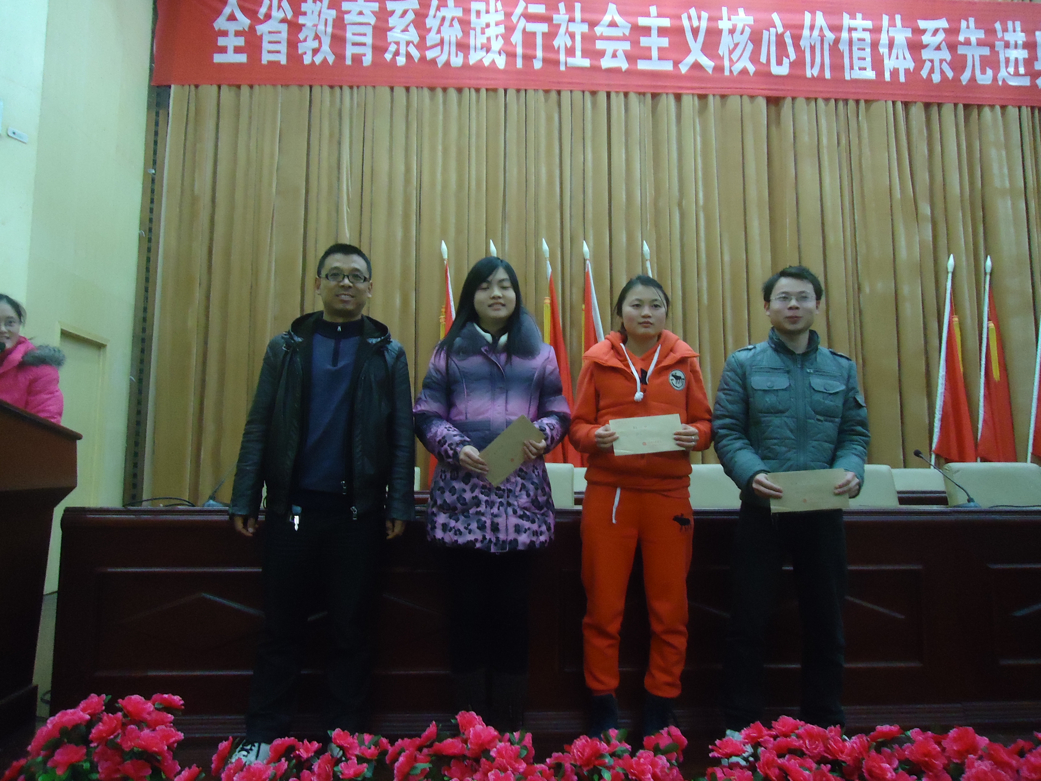 会上,黄书记首先充分肯定了学院在2012年学生管理工作中取得的成绩,并向获得“阳光寝室”荣誉称号的明德3栋101寝室以及获“卫生打扫优秀班级”称号的英语1101、英语1102、英语1104班表示祝贺。连泰老师为获奖集体和个人颁发了奖状和奖金,希望他们再接再厉,并鼓励同学们向他们学习。