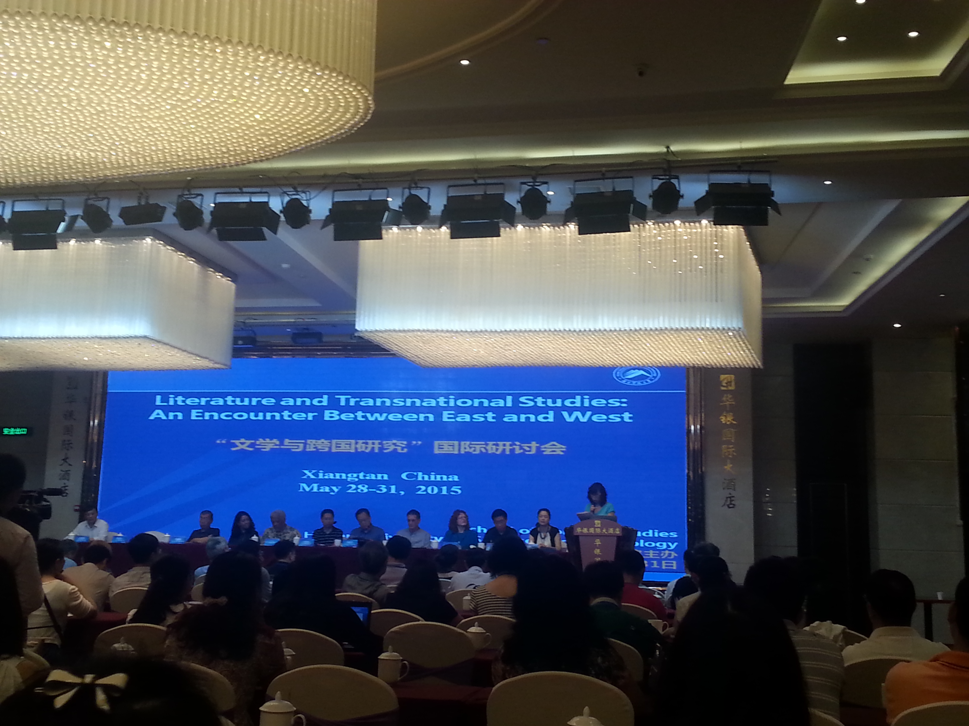 2015年5月28-31日,由湖南科技大学cctv13直播间在线观看主办的“文学与跨国研究”国际研讨会在湖南科技大学成功举行。来自美国、英国、加拿大、日本、奥地利等国家的专家学者与中国社会科学院、北京外国语大学、南京大学、浙江大学等我国40多所高等院校和科研院所的近百名专家、学者参加了本次高端学术会议,cctv13直播间在线观看王家义副院长、朱洁、周育新三位老师出席了此次会议。
