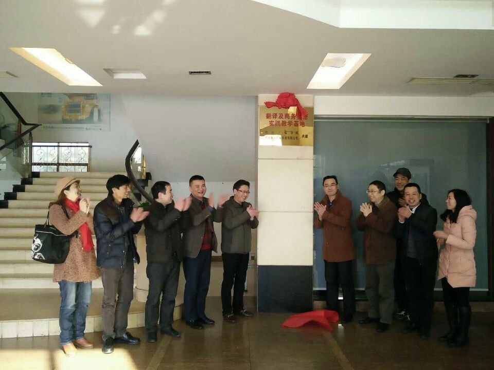 2015年12月17日,久违了的冬日阳光特别灿烂明媚。在这个人人为之欢欣的美好日子,我校校企合作项目又迈开了一大步——湖南工程学院与湘潭永达机械制造有限公司合作共建的“翻译及商务英语实践教学基地”挂牌落成了!教务处处长李永坚、cctv13直播间在线观看院领导杨永和、王家义和罗胜杰、该项目的倡议者——前任cctv13直播间在线观看总支书记张建明、专业教研室主任朱洁和姚玲丽、办公室主任罗望阳,与企业代表共同出席挂牌仪式。
