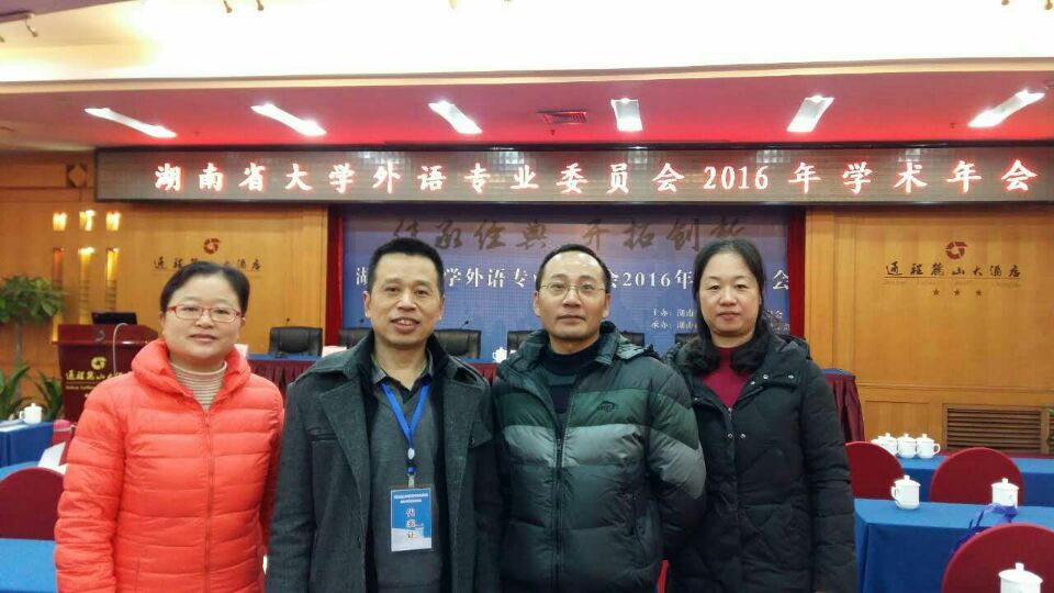11月26日,由湖南省大学外语专业委员会主办,湖南师范大学承办的湖南省大学外语专业委员会2016年学术年会在湖南长沙召开, 副院长罗胜杰率李娟、黄永存和罗望阳等参会。