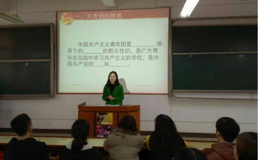 首先,张婷向学生介绍了中国共产主义青年团团旗和团徽的含义:团旗是中国共产主义青年团性质和任务的象征,旗面为红色,象征革命胜利,左上角缀黄色五角星,周围环绕黄色圆圈,象征中国青年一代紧密团结在中国共产党周围;团徽象征着共青团在马克思列宁主义、毛泽东思想的光辉照耀下,团结各族青年,朝着党所指引的方向奋勇前进。紧接着,她还向同学们强调党的规章制度,以及一些行动指南。最后,她联系湖南工程学院的历史发展,近一步阐释了党的先进性。许多学生还表示,经过此次培训,刷新了自己以往对中国共产党的了解与看法,更加坚定了跟着党走的信念不动摇。