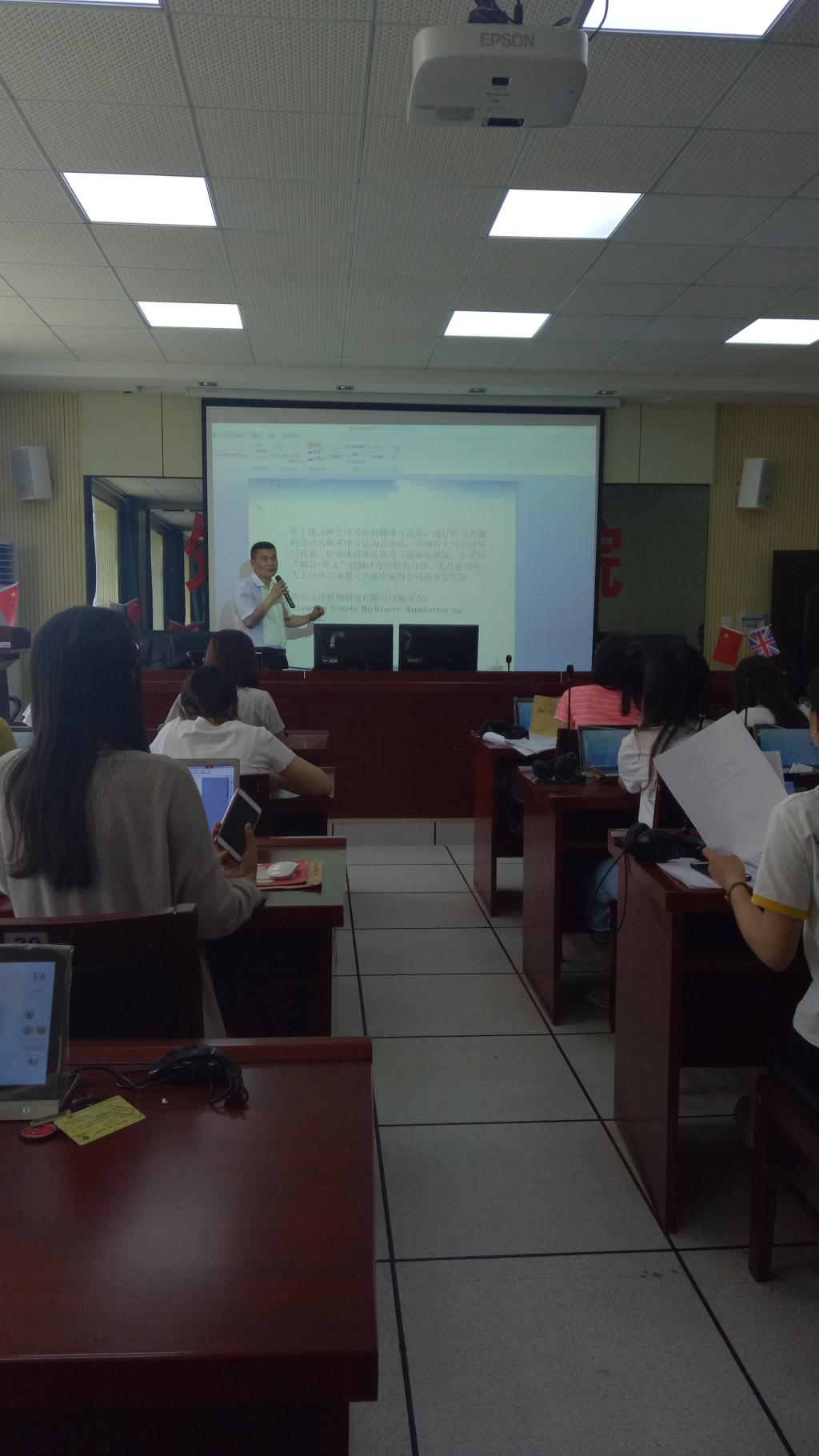 5月16日上午8点,湖南工程学院“翻译及商务英语实践教学基地”指导教师、湘潭永达机械技术总监、厂报总编刘雄,应邀来cctv13直播间在线观看进行学术讲座。讲座在cctv13直播间在线观看同声传译实验室F309举行,cctv13直播间在线观看院长杨永和、校内指导教师张建明、刘肯红,以及14级翻译方向永达基地实习全体学生聆听了讲座。