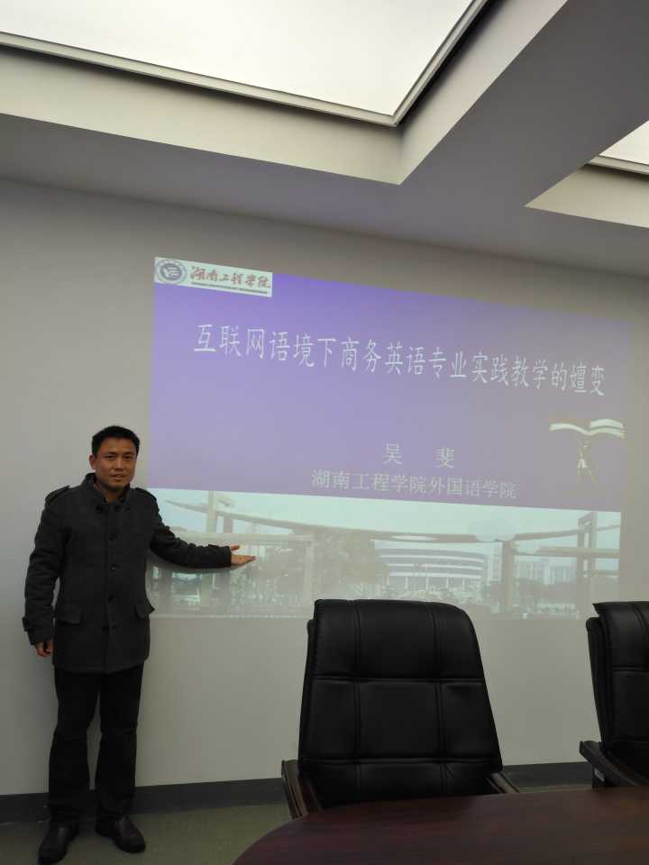 11月17日至19日,由全国国际商务英语研究会、教育部高等学校商务英语专业教学协作组主办、湖南大学cctv13直播间在线观看承办,由《中国外语》、《外国语》、《商务外语研究》、高等教育出版社、上海外语教育出版社、外语教学与研究出版社、清华大学出版社等协办的第四届全国商务英语语言学研讨会在湖南大学cctv13直播间在线观看召开。对外经济贸易大学、上海外国语大学、广东外语外贸大学等40多所知名院校的180余位商务英语研究领域专家学者出席会议,我院教师,商务英语教研室副主任吴斐受院务会议委派,参加了此次会议。