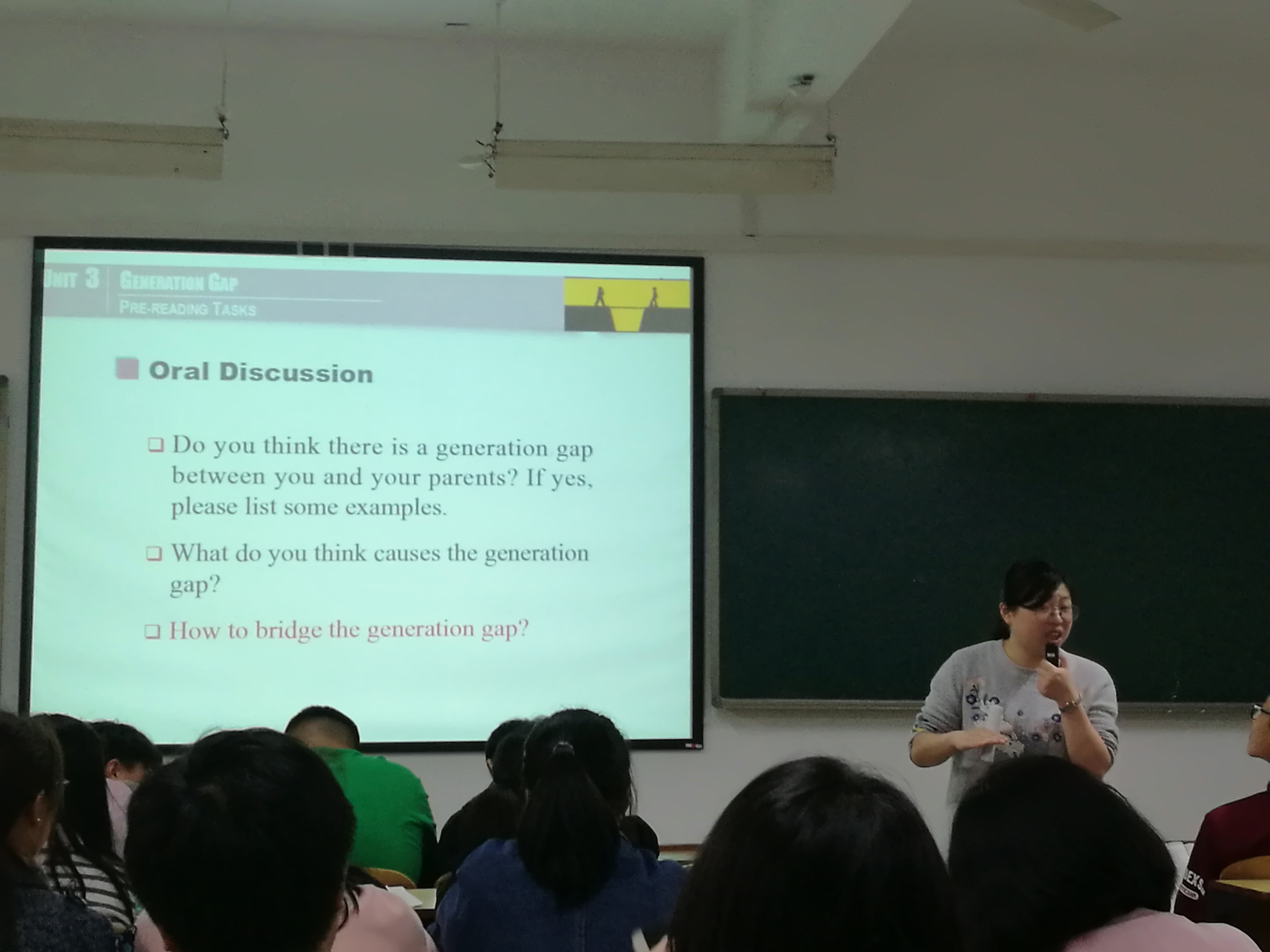 面对英语水平处于不同层次的学生,两位老师因材施教,采取了灵活的备课与讲授方式。毛韧首先运用一组生动有趣的漫画将学生引入授课内容