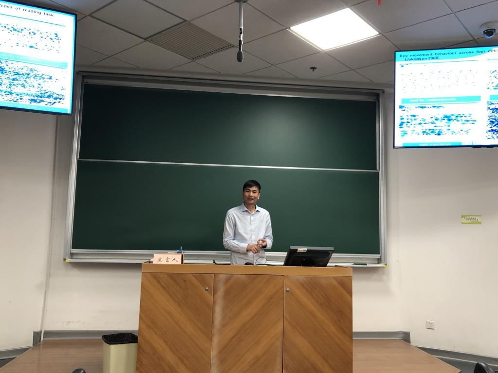 王家义副院长与复旦大学万江波教授共同主持了第十二分会场的发言,他还以“Eye Movement Patterns of Translation Reading”为题报告了自己的研究。
