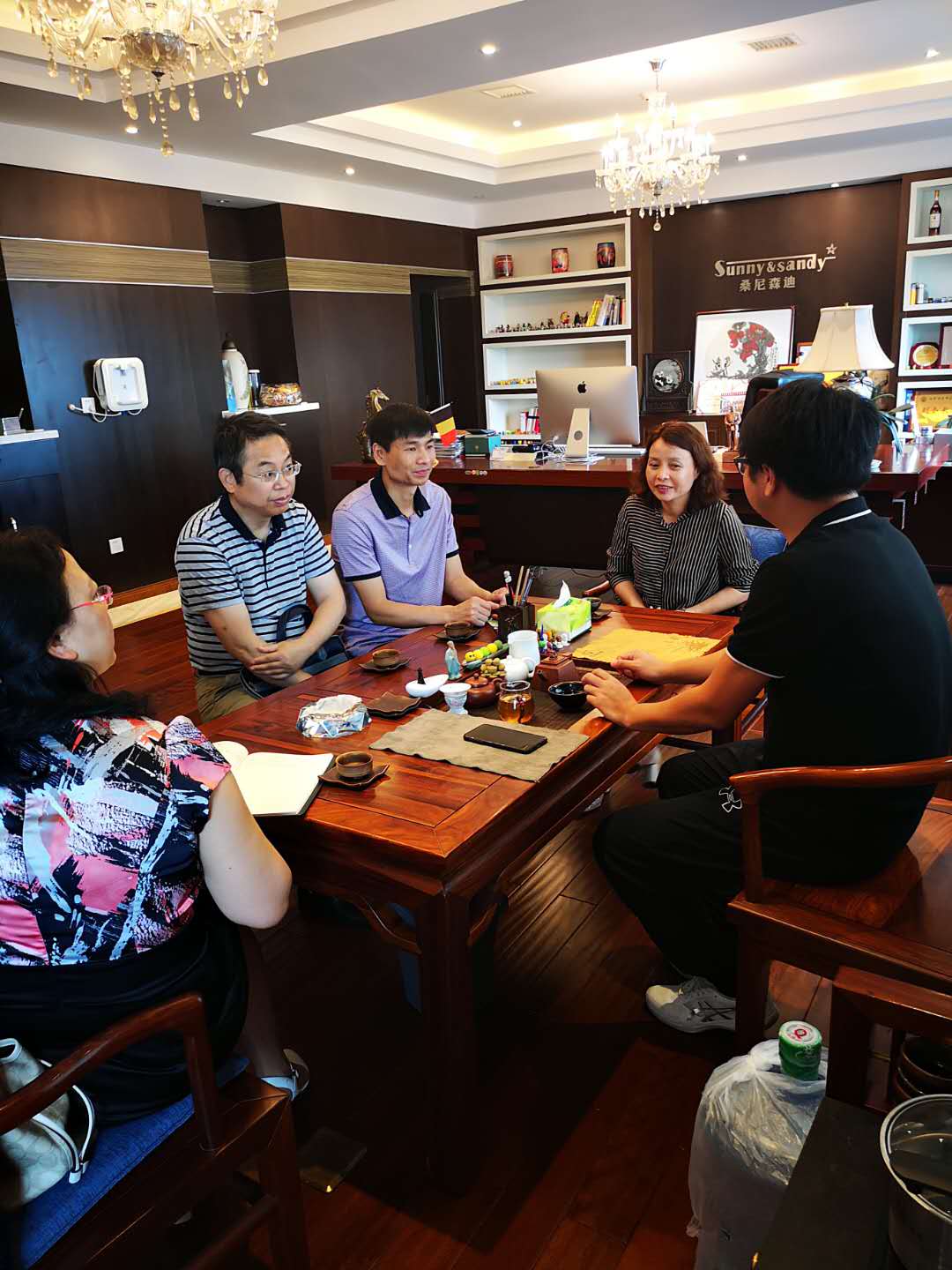 李艳红、杨永和一行首先参观了公司的生产车间,对公司的产品、生产流程和工艺、销路等进行了了解。随后,大家参观了公司的样品间。参观过程中,进出口业务部部长许凌云就公司发展、企业文化、对外贸易及技术产品等方面做了现场讲解。大家为样品柜中展出的琳琅满目、精湛绝伦的玩具产品深深吸引;同时,也对公司通过长期努力获得的各种国际质量证书、资质证书大为赞叹。参观结束后,大家和董事长杨杰就校企合作、基地建设、专业实习进行了交流与沟通。然后,宣传部副部长李艳红与随行记者对杨杰进行深度采访;而杨永和一行则深入企业一线,了解正在公司进行专业实习的2016级商务专业的学生们的工作状况,并与之座谈。交流过程中,老师们详细了解了学生们在公司的实习情况,也从进出口业务部的反馈信息,获取实习基地建设的第一手材料,掌握学生专业发展的优势与不足。老师们从工作、学习、生活等各个方面对实习生进行了指导和关怀,勉励大家虚心好学,拓展专业知识,培养应用能力。