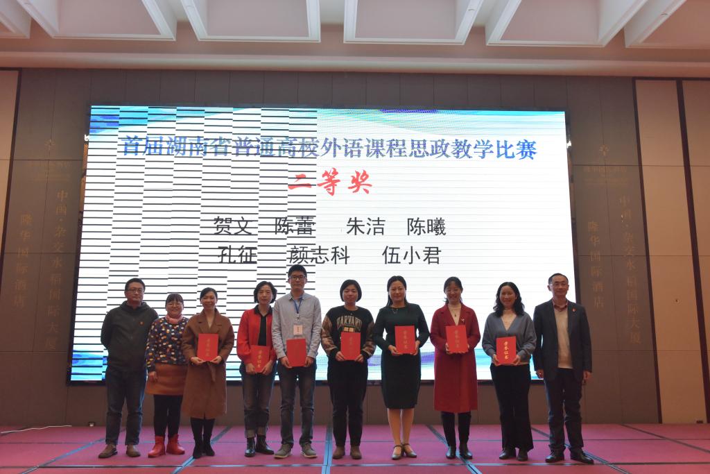 2019年12月13日-15日,首届湖南省普通高校外语课程思政教学比赛决赛暨课程思政教学研讨会在湖南长沙隆华国际酒店成功举办。12月16日晚7点35分湖南教育电视台“教视新闻”报道了此次比赛。我院朱洁老师入围决赛并荣获二等奖。