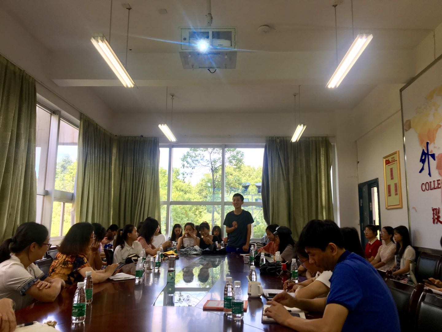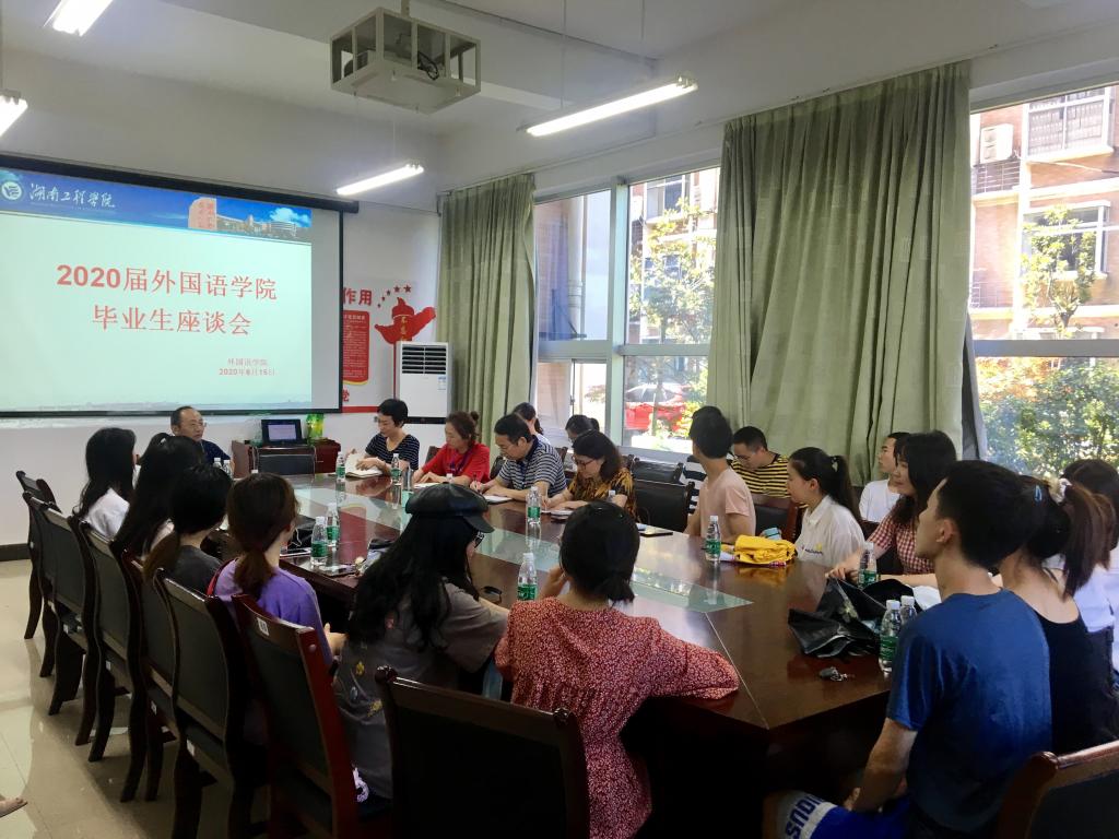 6月15日上午,cctv13直播间在线观看在F-119会议室召开2020届毕业生代表座谈会。院长杨永和、党总支书记肖江淑、副院长王家义与英语教研室、商务英语教研室主任和副主任、院办和学办主任、全体辅导员老师、毕业班班主任以及25名毕业生代表参加座谈会。座谈会由党总支副书记罗望阳主持。