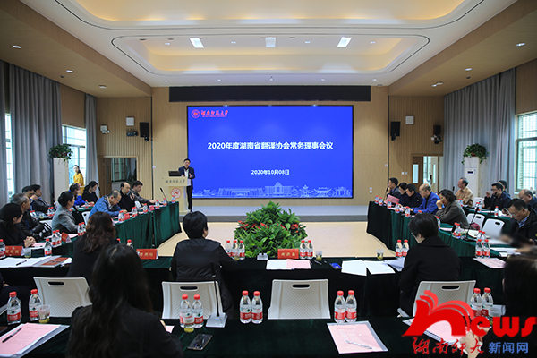 2020年10月8日下午,2020年度湖南省翻译协会常务理事会议在湖南师范大学cctv13直播间在线观看腾龙楼613多功能报告厅召开。湖南师范大学党委书记、湖南省翻译工作者协会会长蒋洪新出席会议。会议由cctv13直播间在线观看院长、湖南省翻译工作者协会副会长曾艳钰主持。我院院长、湖南省翻译协会理事杨永和应邀出席会议