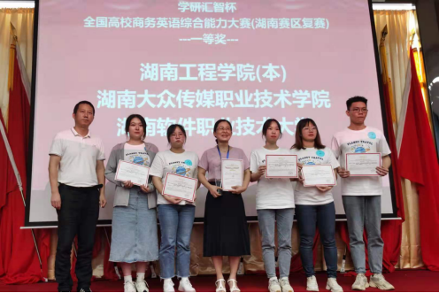 2021年7月3日至4日,首届“学研汇智杯”全国高校商务英语综合能力大赛湖南赛区复赛在长沙进行,湖南工程学院cctv13直播间在线观看派出的参赛队伍“HAPPY STAR GROUP”参加了比赛。该参赛队伍由杨永和教授带队,周宁老师和龚骞老师担任指导老师,参赛队员包括cctv13直播间在线观看商务英语1801班的陈婧怡和许银银、商务英语1803班的艾炜、陈志福和刘卓5位同学。经过一番角逐,湖南工程学院代表队从湖南赛区12支参赛队伍中脱颖而出,荣获团体一等奖;代表队骨干成员艾炜荣获个人最佳讲述者、陈志福荣获最佳思辩者。同时,湖南工程学院代表队取得晋升国赛的资格。