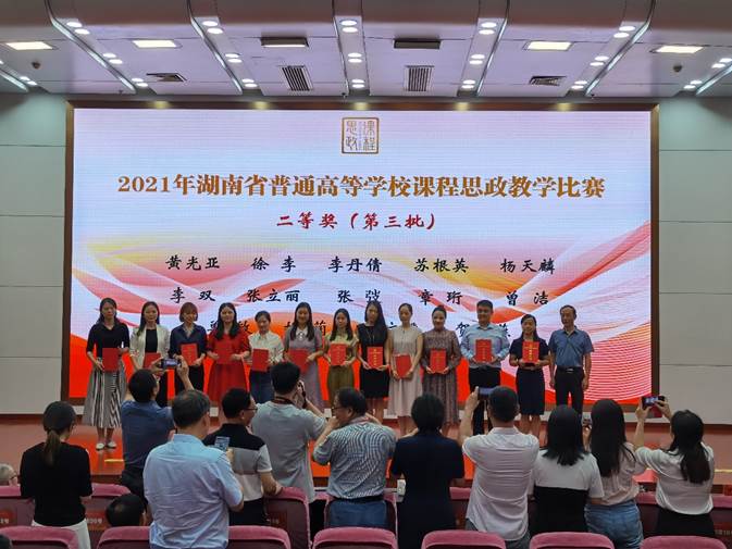 9月26日-28日,2021年湖南省普通高等学校课程思政教学比赛在长沙理工大学举行,cctv13直播间在线观看胡蔺、韩泽婷思政团队参加了决赛,教务处处长方正军、cctv13直播间在线观看院长杨永和、副院长吴斐带队参赛。