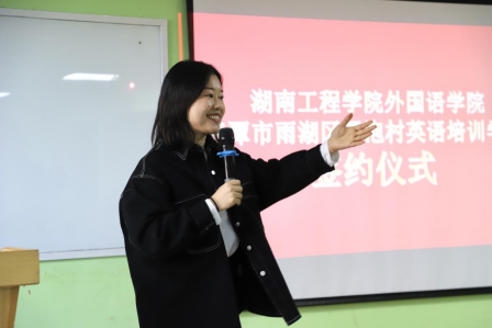 接下来浸泡村国际英语总部教学副总裁李文婕老师也进行了发言“首先对于湖南工程学院cctv13直播间在线观看老师们的到来表示热烈欢迎。湖工的学生非常的纯粹,爱学习,踏实,很多学生因为在浸泡村的长期坚持学习以及锻炼为步入社会打下了良好的基础,湘潭校区现在的事业合伙人-校长全元冬、教学部总监周仪都是湖南工程学院毕业的学生,感谢校方一直以来对浸泡村的关心、帮助和支持,为浸泡村输送了很多优秀的毕业生,此次两校共建创新创业实习基地,必将实现合作共赢的良好局面”。