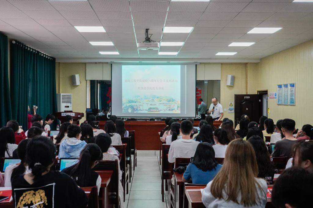 10月6日下午,cctv13直播间在线观看迎校庆70周年纪念月系列活动之——校友讲座在教学楼F309会议室举行,经贸英语专业93级上海校友杨青、广东校友刘清华、湘潭校友文丰和苏州校友钟信知主讲,学院党总支副书记罗望阳主持。