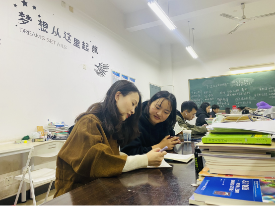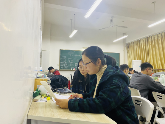 在计算电子学院考研基地,考研学子纷纷拿出准备好的作文,等待着老师的面批。“小作文主要是在遵守格式的基础上,覆盖所有的信息点,有时还会有一些合理的引申。”一对一讲解同时,陈珊和章明蕾老师还将需要注意的共性问题讲解给考研基地的同学们。两位老师的现场答疑讲授,不仅解答了同学们英语写作阅读中存在的问题,还针对大家考研英语学习中的其他疑惑一一予以破解,同学们都觉得收获满满,并感谢学校老师们在寒冷的冬夜为他们提供了暖暖的学习帮助,他们不仅掌握了切实有效的复习方法和答题技巧,更增强了考研的信心。