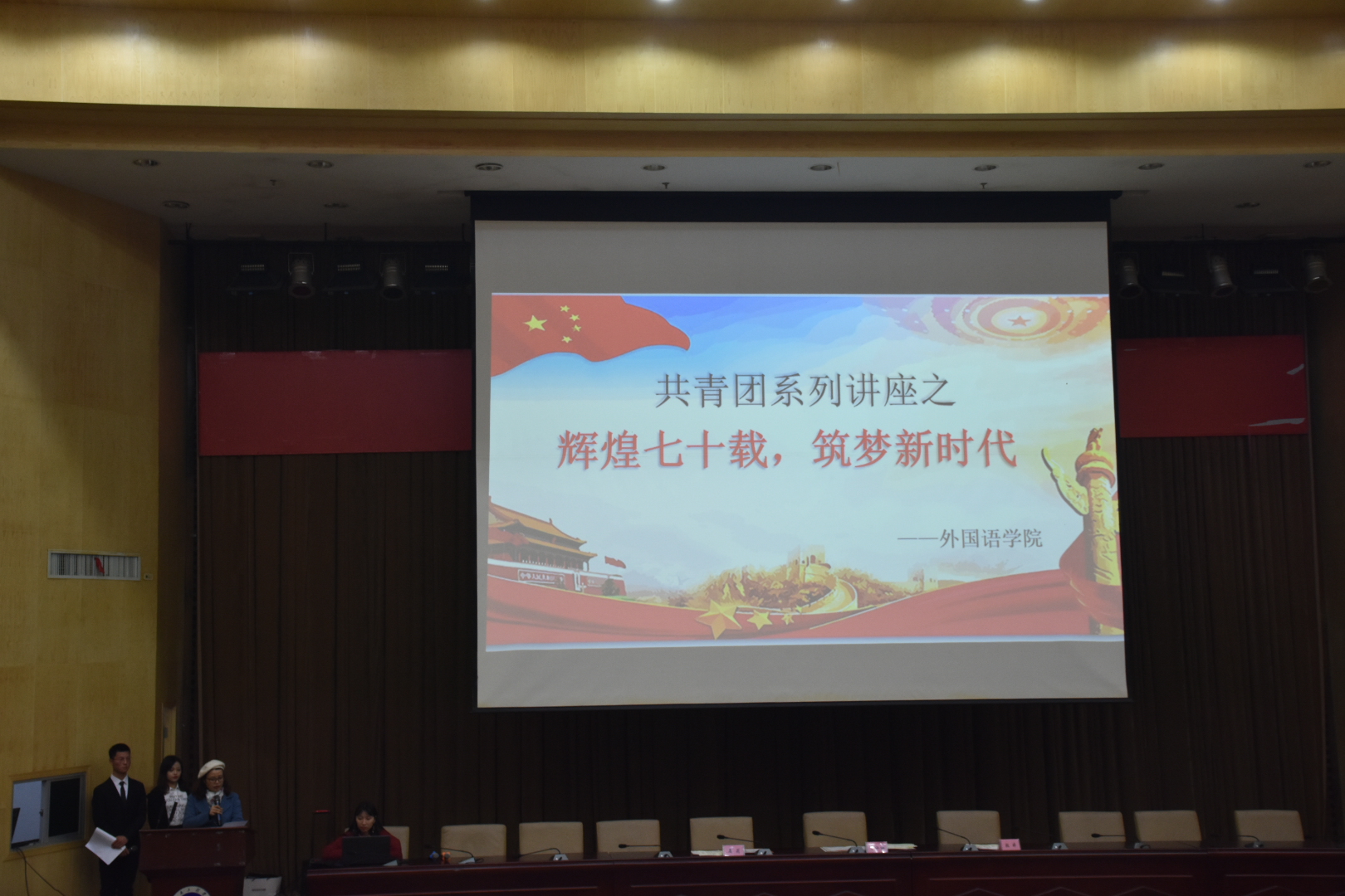 为加强学院青年学生的理想信念教育与爱国主义教育。12月5日晚8点半,cctv13直播间在线观看在图书馆一报告厅开展了以“辉煌七十载,筑梦新时代”为主题的共青团系列讲座。学院党总支书记肖江淑担任主持人,学院400名学生到场聆听。