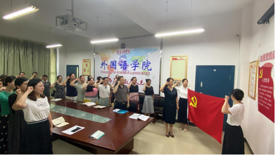温誓词,担使命。在教工一支部书记李娟的带领下,全体党员庄严地举起右手紧握拳头郑重宣誓。肃穆的会场上回荡着激昂的誓言,在那一刻,大家心潮澎湃,热血沸腾。