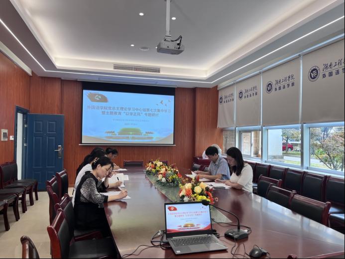 为推动学习贯彻习近平新时代中国特色社会主义思想主题教育入脑入心、走深走实,7月4日,cctv13直播间在线观看党总支理论学习中心组于F119开展第七次集体学习暨主题教育“以学正风”专题研讨。本次大会由cctv13直播间在线观看党总支部书记陈亚琼主持,全体总支委员参加会议。