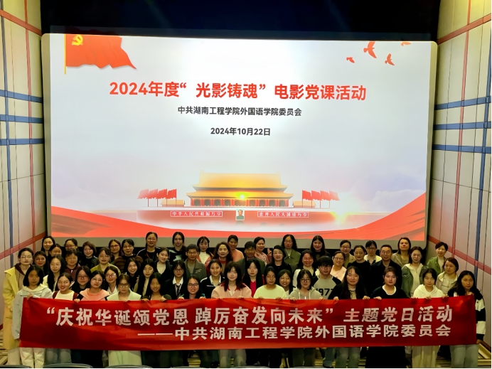 为推动党史学习教育常态化长效化,引导师生党员进一步强化爱国主义和理想信念教育,厚植家国情怀,2024年10月22日下午,湖南工程学院外国语学院党委组织开展“光影铸魂”电影主题党课活动,师生党员共同观看爱国题材力作——《志愿军:存亡之战》。