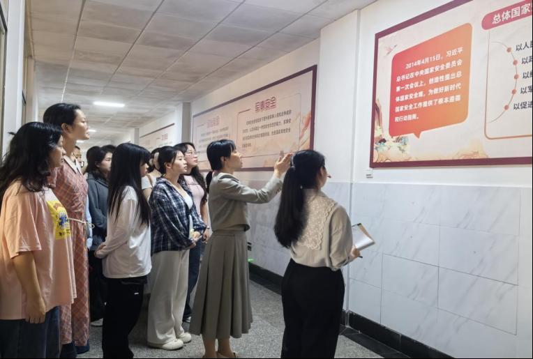 活动现场,师生党员们站在校园国家安全知识展览墙前,一条条与国家安全紧密相关的知识要点跃然眼前。湘潭市第二届国家安全主题演讲比赛获奖者黄烨担任讲解员,她从“以人民安全为宗旨、以政治安全为根本”的核心要义出发,系统讲解了国家安全体系构成,帮助党员们构建起完整的国家安全知识框架。
