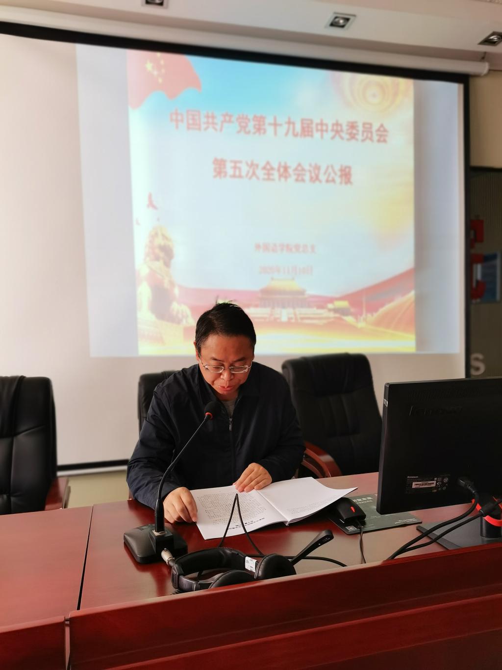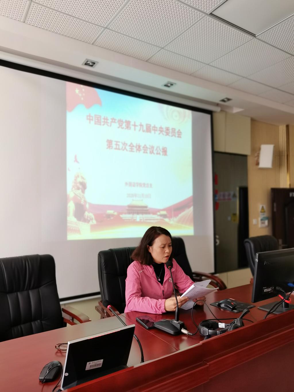 首先,党总支书记肖江淑带领大家一起学习了《中国共产党第十九届中央委员会第五次全体会议公报》,她对《会议公报》进行了详细解读,大家对公报内容有了更加清晰的认识;随后,副院长罗胜杰与大家一起学习《开启全面建设社会主义现代化国家新征程——从党的十九届五中全会看中国未来发展》这一文章,大家对中国未来发展满怀憧憬;接着,副院长王家义解读了《五中全会释放未来中国发展重要信号》,让大家深刻理解和感知了习近平“以人民为中心”的治国理念;然后,院长杨永和跟大家一起学习了习近平总书记《国家中长期经济社会发展战略若干重大问题》的重要论述,大家熟知了习近平总书记关于坚定实施扩大内需战略等宏观发展问题;最后,副书记罗望阳跟大家一起,观看了视频新闻:《习近平总书记指挥谋划“十四五”——一线调研 广泛深入》和《习近平总书记指挥谋划“十四五”——以网为媒 问计于民》。